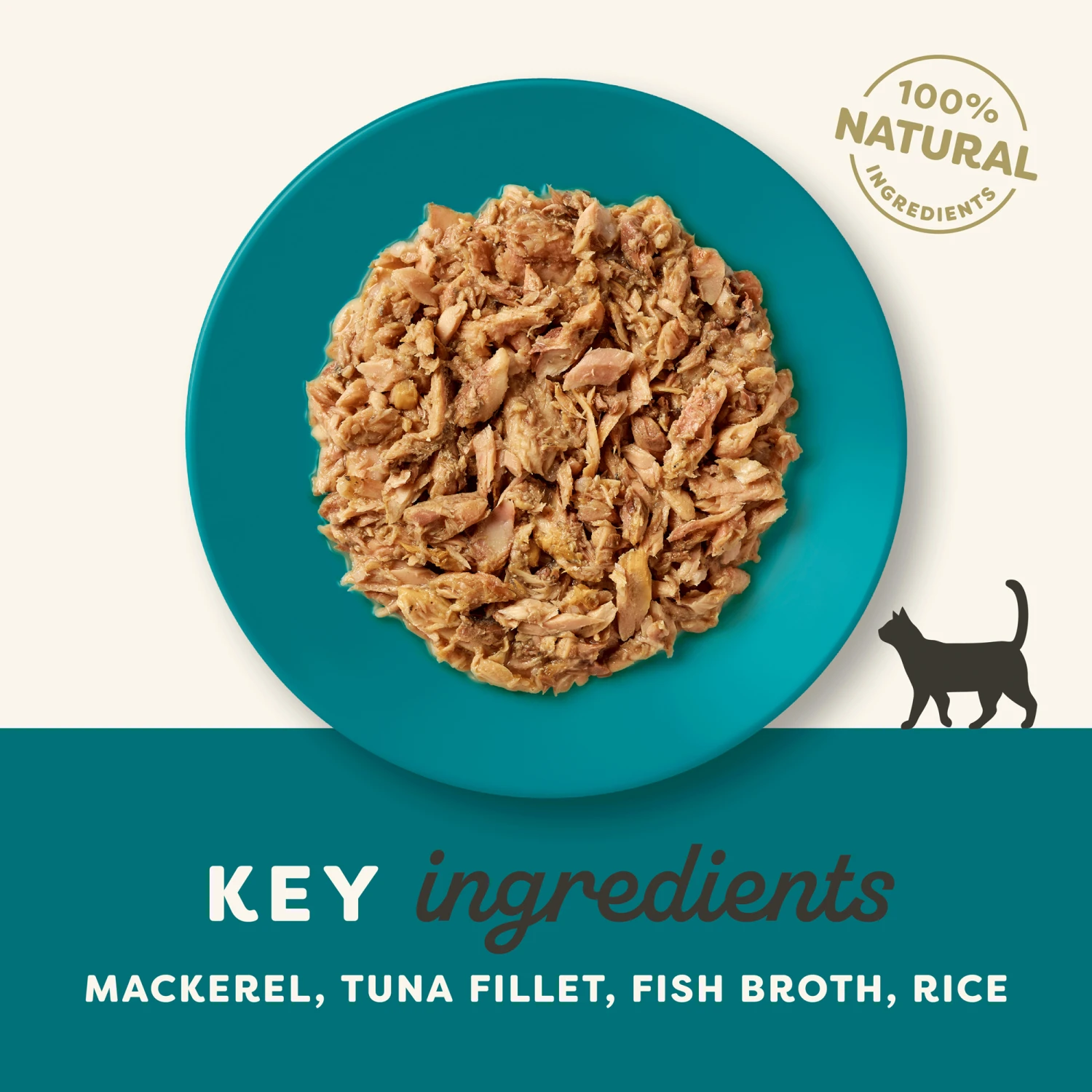 Applaws hat dieses Nassfutter mit verschiedenen Sorten Seefisch für alle Fischliebhaber unter den Katzen entwickelt. Jede Dose ist randvoll mit Makrele, Thunfisch, Bouillon und Reis. So kann Ihre Katze täglich ihre feine Fischmahlzeit genießen. Fisch ist von Natur aus reich an Omega-3- und Omega-6-Fettsäuren. Diese ungesättigten Fettsäuren tragen zur Gesundheit der Haut bei und sorgen für ein glänzendes Fell. Außerdem ist dieses Futter eine Quelle für Taurin. Taurin unterstützt die Augengesundheit und fördert die Herzfunktion. Das Katzenfutter enthält lediglich vier Zutaten und ist ohne künstliche Zusatzstoffe hergestellt.