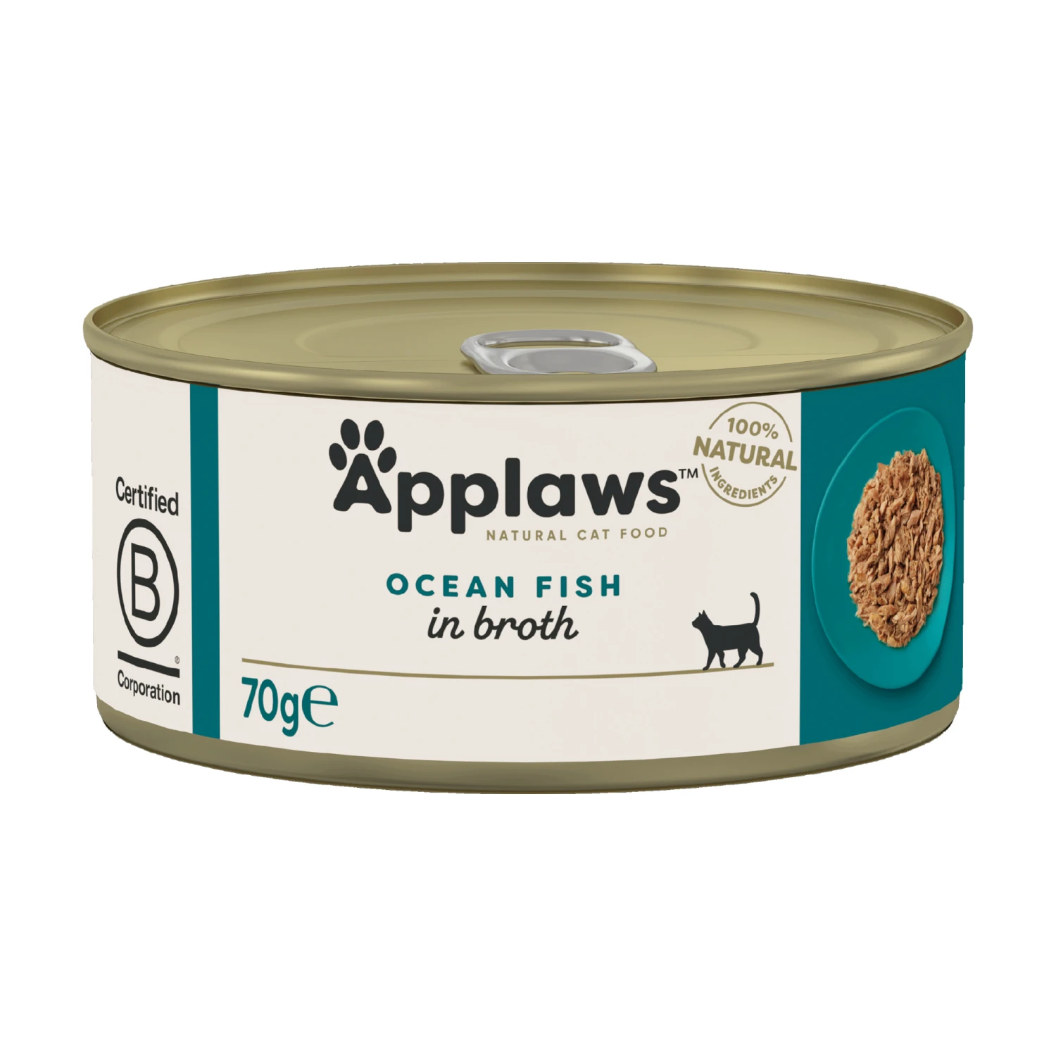 Applaws Cat Ocean Fish ist in Dosen mit 70 und 156 g Inhalt erhältlich.