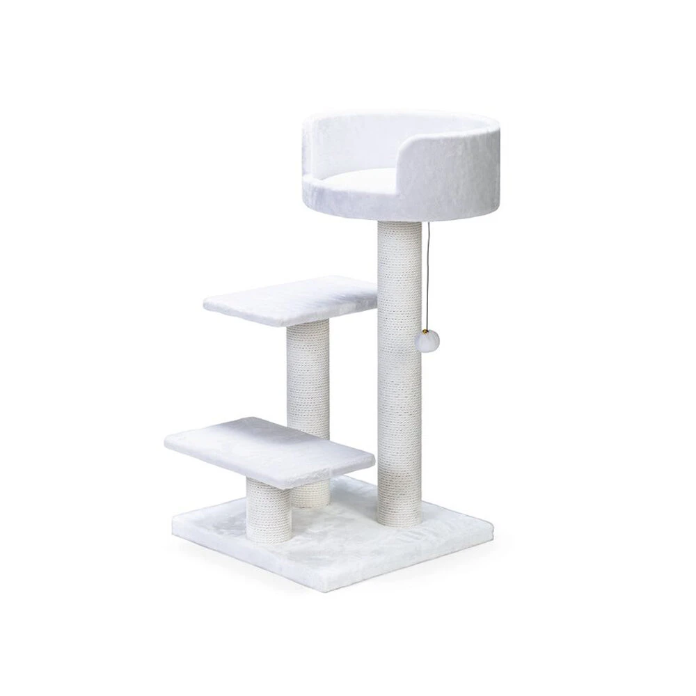 Dieses Kratzmöbel verfügt über drei Liegeplätze, auf denen sich Ihre Katze schön ausruhen kann. Diese Liegeplätze werden von drei stabilen Kratzmöbeln gestützt. Der Kratzbereich besteht aus einem Material, an dem Ihre Katze gerne ihre Krallen benutzt. Ganz oben befindet sich ein Katzenmonat, in dem sich Ihre Katze entspannen kann. Der Plüschball, der an einer elastischen Schnur hängt, eignet sich perfekt zum Spielen. Das Glöckchen, das in den Ball integriert ist, sorgt für zusätzlichen Spielspaß.