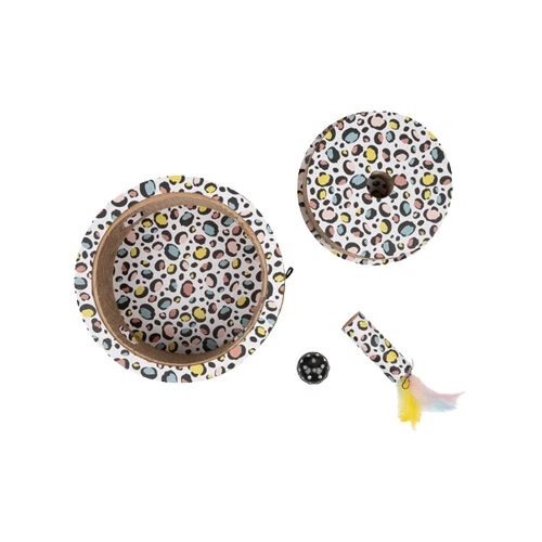 Dieses stilvolle Spielzeug aus Karton ist das beste Geburtstagsgeschenk für Ihre Katze! Der District 70 Fiesta hat die Form einer Geburtstagstorte und besteht aus drei Schichten. Die untere Schicht hat mehrere Löcher, um einen klimpernden Ball aufzufangen. Die anderen Schichten bestehen aus kratzbarem Karton und verspielten Federn.