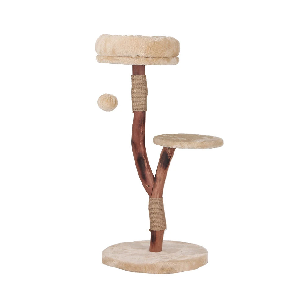 Der Duvo+ Kratzbaum Nina ist ein mittelgroßer, robuster Kratzbaum, der auf die natürlichen Bedürfnisse Ihrer Katze eingeht. Dieser Kratzbaum besteht aus natürlichem Hartholz und verfügt über zwei weiche Plüsch-Liegeplattformen, auf denen Ihre Katze herrlich ruhen kann. Der Stamm ist teilweise mit widerstandsfähigem Sisal umwickelt, was einen attraktiven Kratzplatz bietet. Die Kombination aus Holz und Plüsch verleiht diesem Kratzbaum eine warme, natürliche Ausstrahlung, die in jede Einrichtung passt. Für zusätzlichen Spielspaß ist auch ein Plüsch-Spielball enthalten. Ideal, um den Kratzbedarf zu decken und Stress zu reduzieren.
