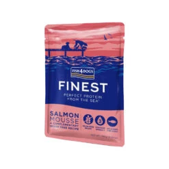 Die Finest Mousse Produkte von Fish4Dogs sind köstliche Nassfutter für Ihren Hund. Die Mousse wurde aus Fisch und Seetangextrakten hergestellt, sodass das Futter besonders schmackhaft für Ihren Hund ist. Der Fisch wird schonend gedämpft und anschließend zu einer zarten Mousse aufgeschlagen. Daher hat dieses Nassfutter seine leichte und feine Textur. Das Futter ist ohne Getreide hergestellt und eignet sich daher auch für Hunde mit einer empfindlichen Verdauung. Sie können Finest Mousse pur füttern oder es mit Trockenfutter mischen, um dieses besonders schmackhaft für Ihren Hund zu machen. Das Nassfutter ist in zwei unterschiedlichen Geschmacksrichtungen erhältlich: Salmon (Lachs) und Trout (Forelle).