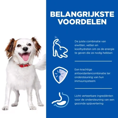 Hill’s hat ein Trockenfutter mit leckerem Huhn speziell für kleinere Hunde entwickelt. Es ist leicht verdaulich und reich an hochwertigem Protein, damit die Muskeln Ihres kleinen Freundes schlank und stark bleiben. Und dank der zugesetzten Omega-6-Fettsäuren und des Vitamins E wird Ihr Hund mit einem glänzenden, gesunden Fell glänzen!