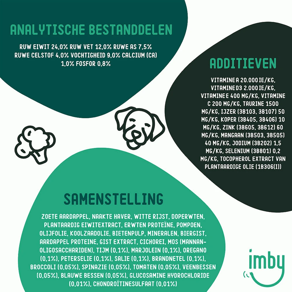 Imby Vegan Hundefutter wurde von Tierärzten und Ernährungswissenschaftlern entwickelt. Dieses Futter wurde speziell entwickelt, um erwachsenen Hunden eine vollständige und ausgewogene Ernährung auf pflanzlicher Basis und ohne tierisches Eiweiß zu bieten. Dank seiner hypoallergenen Rezeptur ohne Gerste, Weizen und Mais ist es perfekt für Hunde mit Nahrungsmittelunverträglichkeiten geeignet.