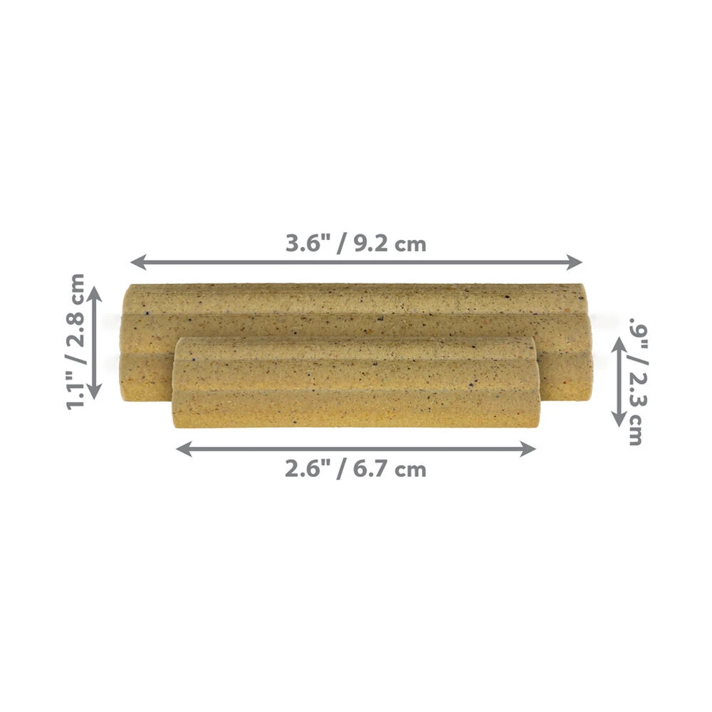 KONG Ziggies Enhanced Puppy wurden speziell entwickelt, um die Mundgesundheit Ihres Welpen zu unterstützen und das Unbehagen beim Zahnen zu lindern. Diese pflanzlichen Kau-Snacks enthalten Algen und sind mit DHA, einer Omega-3-Fettsäure, angereichert, die zu einer gesunden Gehirnentwicklung beiträgt. Die weichere Textur ist sanft zum empfindlichen Magen-Darm-Trakt der Welpen und massiert das Zahnfleisch, was hilft, Zahnbelag zu reduzieren und für frischen Atem sorgt. Diese Snacks enthalten keine hinzugefügten Weizen, Mais oder Soja und sind ideal als Leckerli oder zum Befüllen von KONG Puppy Gummispielzeugen für zusätzlichen Spielspaß.