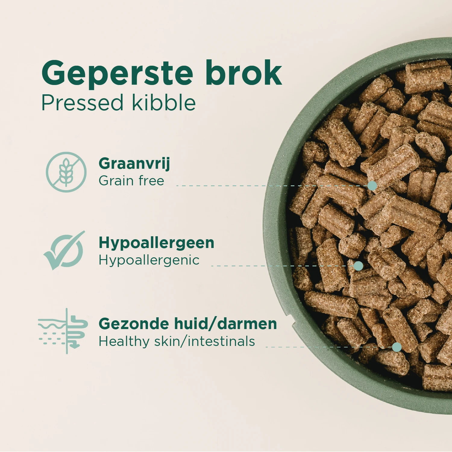 Entenmehl (29,0 %), Kartoffelstärke, Erbse, Rinderfett, Kartoffeleiweiß, Chicorée, Zellulose, Sonnenblumenöl, Fructooligosaccharide (FOS), Kaliumchlorid, Algenöl (0,3 %), Hefehydrolysat.