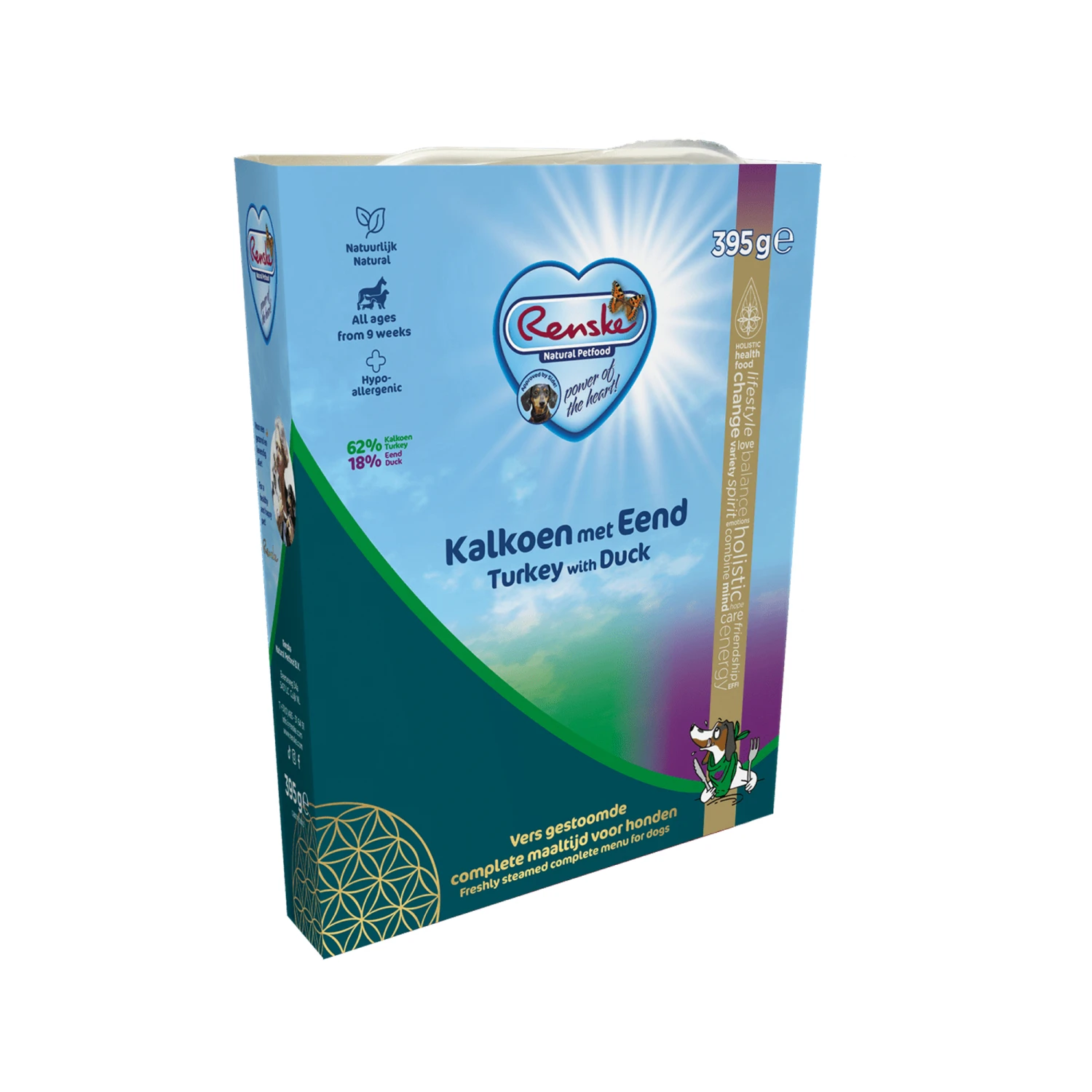 Mit den Frischfleischgerichten von Renske können Sie Ihrem Hund eine schmackhafte und komplette Ernährung mit hochwertigem Nassfutter bieten. Die Hauptzutaten des Futters sind Frischfleisch oder frischer Fisch (mindestens 80%). Renske Frischfleisch ist glutenfrei und wird mit einer kleinen Menge Vollkornreis, verschiedenen Gemüsesorten und leckeren Kräutern verfeinert. Die Inhaltsstoffe werden schonend gedämpft, wodurch die Nährstoffe optimal erhalten bleiben. Dieses Futter ist für alle Hunde über 9 Wochen geeignet. Für empfindliche Hunde können Sie das Nassfutter auch in einer getreidefreien Variante bestellen.