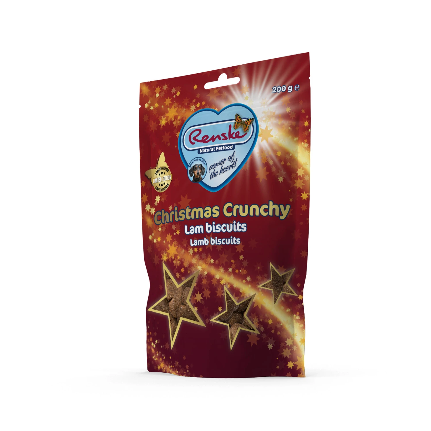 Die Renske Weihnachts-Knusperkekse mit Lammgeschmack sind eine schmackhafte und nahrhafte Belohnung für Hunde. Diese besondere festliche Köstlichkeit wird aus hochwertigen, natürlichen Zutaten hergestellt und versorgt Ihren Hund mit der benötigten Energie und Vitalität. Die Kekse sind 100% natürlich, glutenfrei und frei von künstlichen Zusätzen, was sie ideal für Hunde mit Nahrungsmittelintoleranzen macht. Diese Snacks sind angereichert mit Glucosamin und Chondroitin zur Unterstützung geschmeidiger Muskeln und Gelenke sowie Präbiotika zur Förderung einer gesunden Darmflora. Geeignet für Hunde ab 9 Wochen.