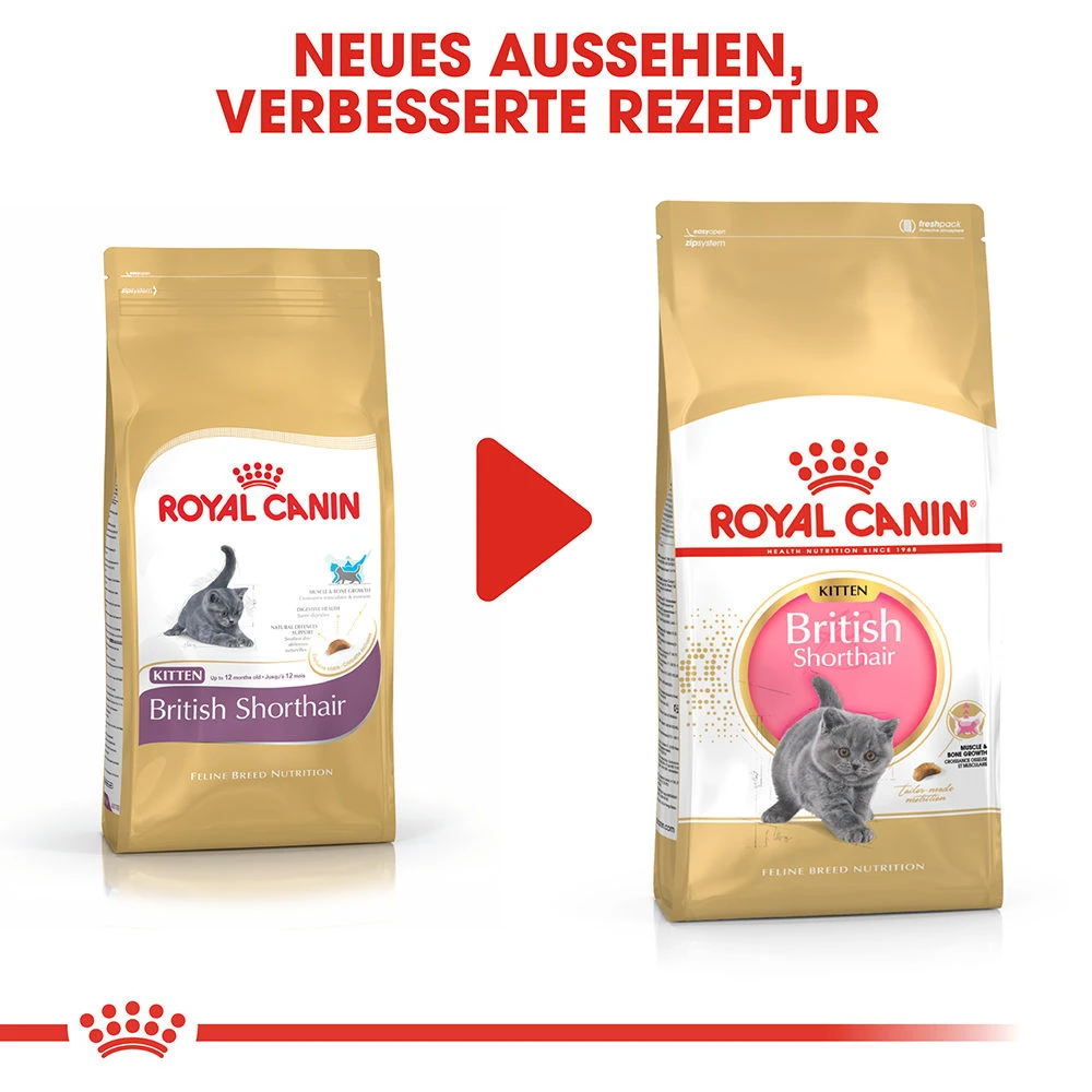 - spezifisches Rassefutter für Britisch Kurzhaar Kitten bis zu einem Alter von 12 Monaten