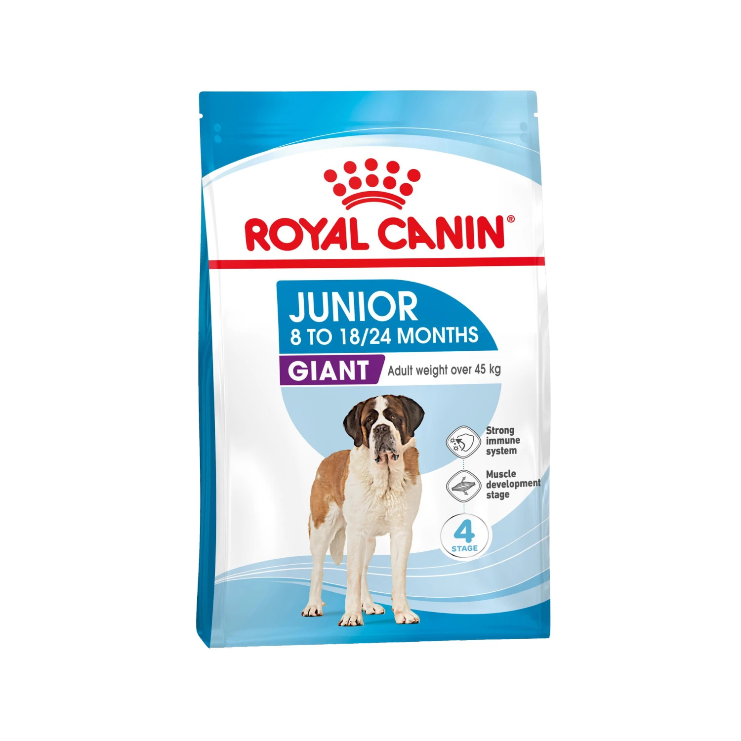 Royal Canin Die sehr großen Hunderassen erreichen ihr Erwachsenengewicht von 45 kg oder mehr nach 18 bis 24 Monaten. Während dieser Zeit ändern sich ihre Ernährungsbedürfnisse. Aus diesem Grund hat Royal Canin Giant Junior entwickelt. Für Welpen zwischen 2 und 8 Monaten geben Sie Royal Canin Giant Puppy.