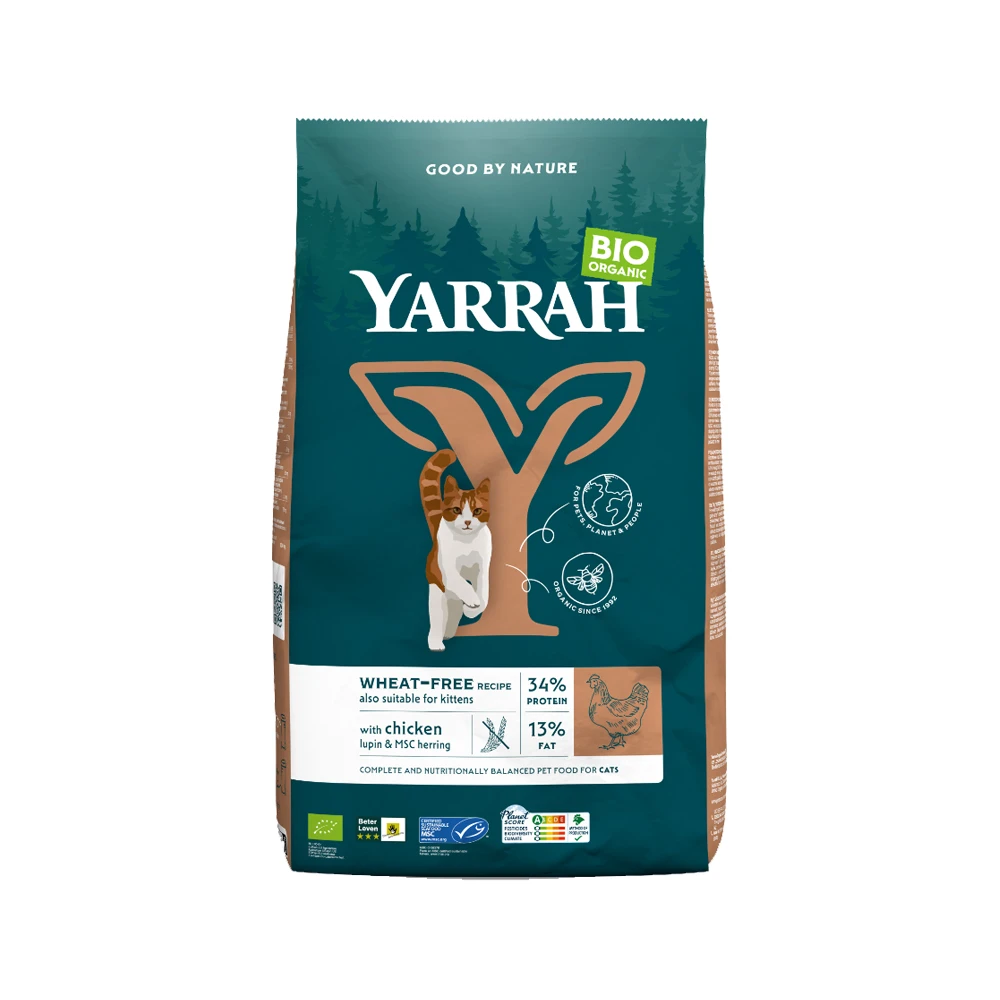 Immer mehr Katzenbesitzer stehen Katzenfutter kritisch gegenüber, in dem Getreide verarbeitet wird. Obwohl Getreide aus hochwertigen Eiweißquellen besteht – vorausgesetzt, dass sie durch die Katzen aufgenommen und gut verarbeitet werden können – wird die Frage nach getreidefreien Produkten größer und größer. Die Alu-Schälchen von Yarrah sind alle frei von Getreide. Aber um den Wünschen der Katzenbesitzer noch mehr entgegen zu kommen, hat Yarrah nun für erwachsene Katzen und Kätzchen ab sechs Wochen ‚Yarrah – Bio Organic Adult Cat Food Grain Free‘ entwickelt. Diese Brocken mit Huhn und Fisch sind 100% biologisch und getreidefrei!