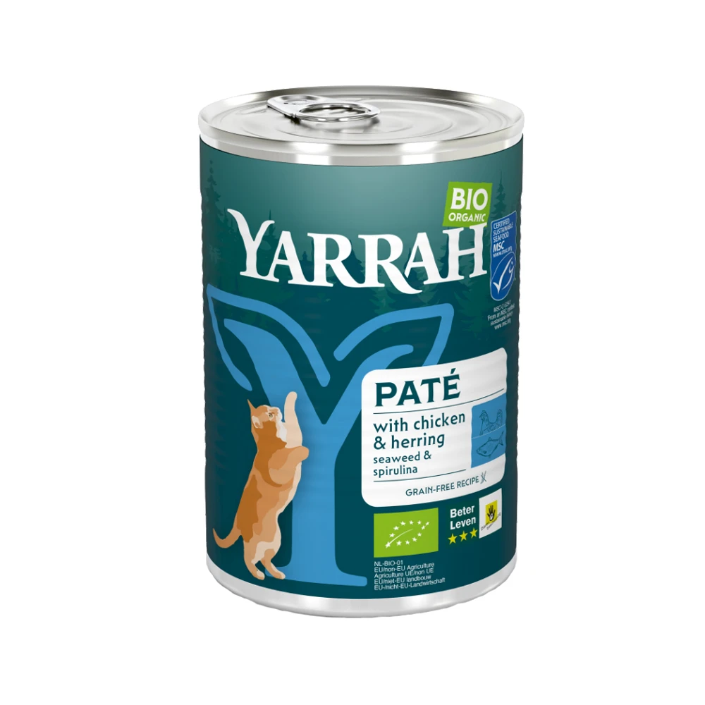 Die Pastete aus Huhn und Fisch (MSC) mit Spirulina und Meeresalgen von Yarrah enthält biologische Zutaten und bietet Ihrer Katze eine gesunde Mahlzeit. Der in der Pastete verarbeitete Fisch trägt das MSC-Siegel und stammt aus nachhaltiger Fischerei.